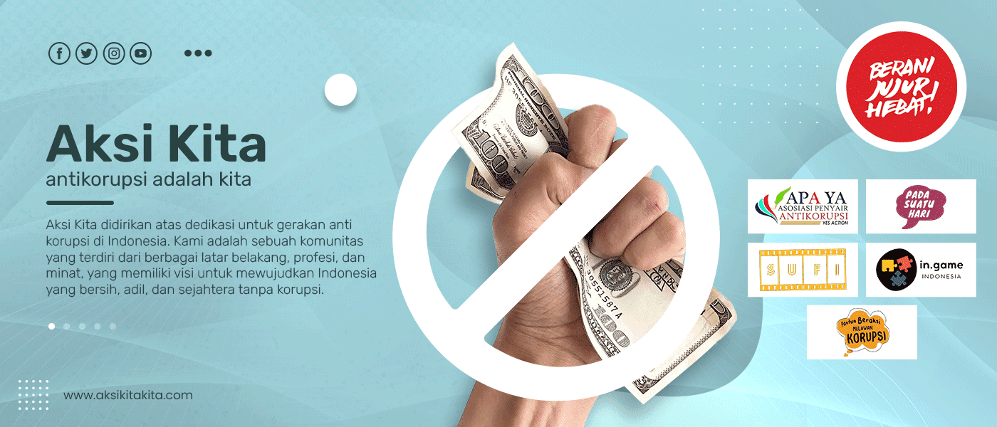 Aksi Kita bergerak di berbagai bidang, seperti mendongeng, puisi, pantun, boardgame, dan film anti korupsi. Kami mengajak Anda untuk bergabung dengan kami dan berkontribusi dalam hal-hal sederhana yang bisa kita lakukan untuk melawan korupsi. Kami juga menyediakan berbagai informasi, edukasi, dan inspirasi tentang anti korupsi di website kami. Mari kita tunjukkan bahwa antikorupsi adalah kita, dan bahwa kita dapat berkontribusi dalam hal-hal sederhana yang bisa kita lakukan #berawaldarikita.